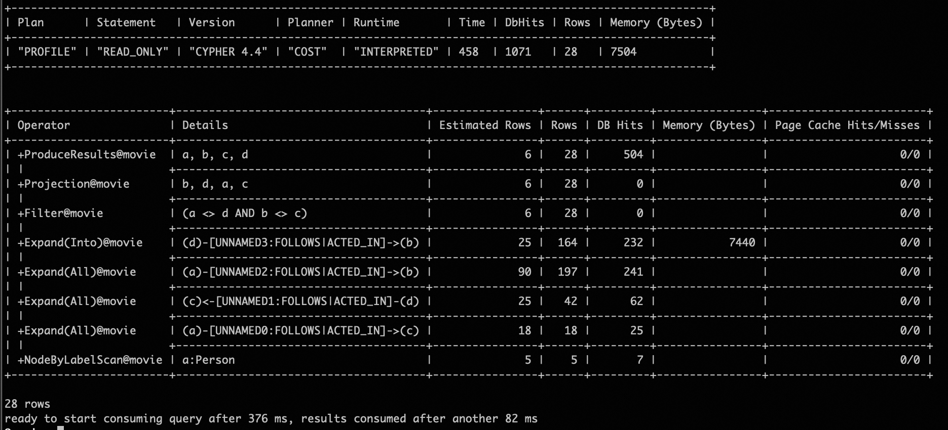 Profile Match (a:Movie)-[]->(b) Return a, b;