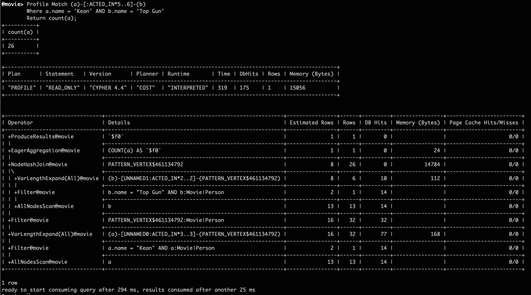 Profile Match (a)-[:ACTED_IN*5..6]-(b)